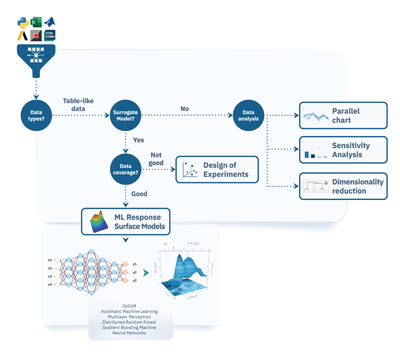 - modeFRONTIER's automated simulation workflow stands as the unified backbone for seamlessly handling both tabular and spatio-temporal data to perform statistical analysis and gain richer insight into system behavior, to eventually improve initial DOE, and use it to build reliable surrogate models.
